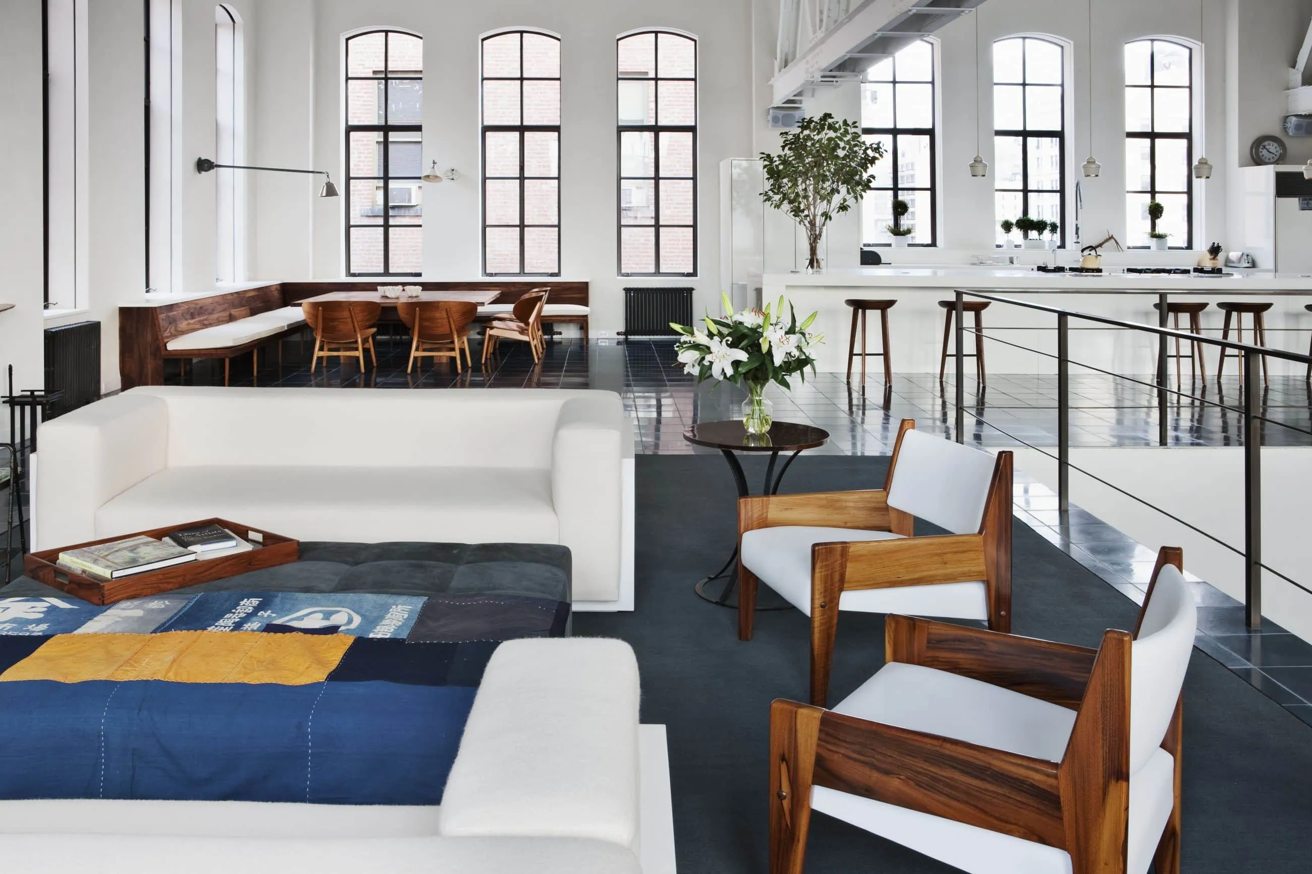 This duplex loft renovation has an unusual history as it originally held a running track and basketball court for a gymnasium. A previous conversion covered much of the structural elements, which this project sought to unmask and express. The firm further restored the space’s industrial vernacular by using casement windows, blackened steel railings, and concrete floor tiles.