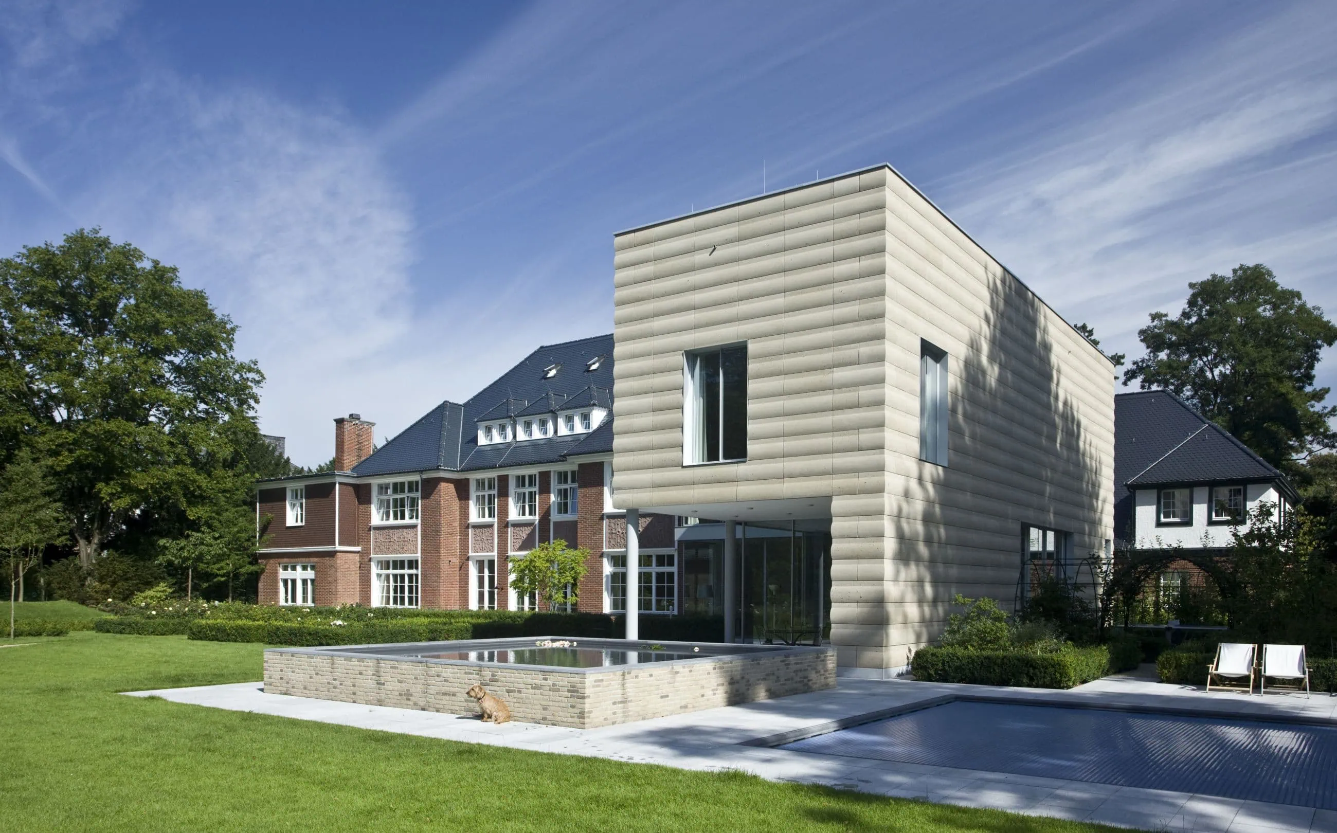 Built in 1914 this large private residence outside of Cologne had undergone a somewhat awkward renovation and expansion in the 1950s. In updating the house for the current owners Selldorf Architects removed the addition from the east side and replaced it with a new 2,700 sf contemporary wing. The original building was painstakingly restored including the removal of heavy door and window eaves and a south pergola which resulted in more natural light penetrating the interior.