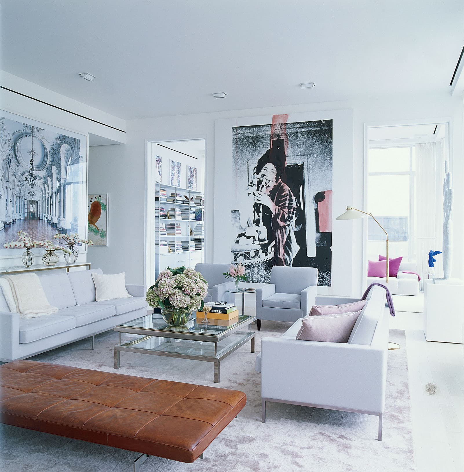 The Venetian plaster walls provide a gallery-like backdrop for the client’s extensive contemporary art collection, and a complementary backdrop to the exquisite furnishings, such as a Mira Nakashima bench, Florence Knoll sofas, and Carlo Scarpa vintage light fixtures. The residence features several pieces from Vica by Annabelle Selldorf including a custom designed Corian-top dining table which sits on rosewood legs to provide a calming and substantial surface.
