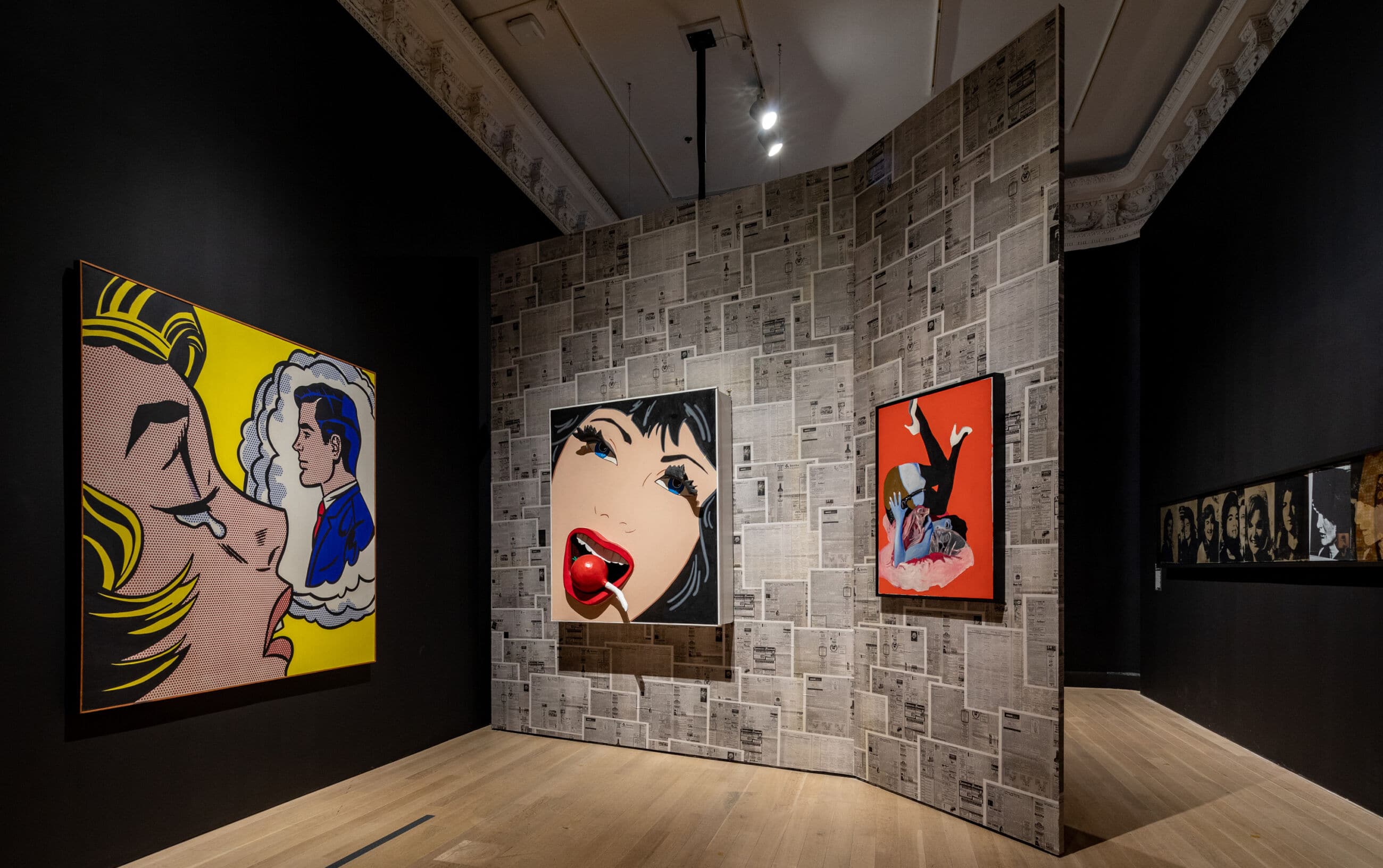 Exploring the art world’s epicenter shift from Europe to New York City that occurred during 1962-1964, the exhibition occupied two floors with over 150 works of art including painting, photography, sculpture, and film, alongside fashion, design, dance, poetry, and ephemera. New angular walls created a sense of momentum and forward-looking thought reminiscent of the energy and context of the time. Non-hierarchal spaces for larger groupings of art alongside more intimate spaces for vernacular moments simulated the metropolitan experience. Various additional layers of context were provided to support the artwork in manifesting the 1960s everyday life such as period wallpapers and full-scale photo blow-ups.