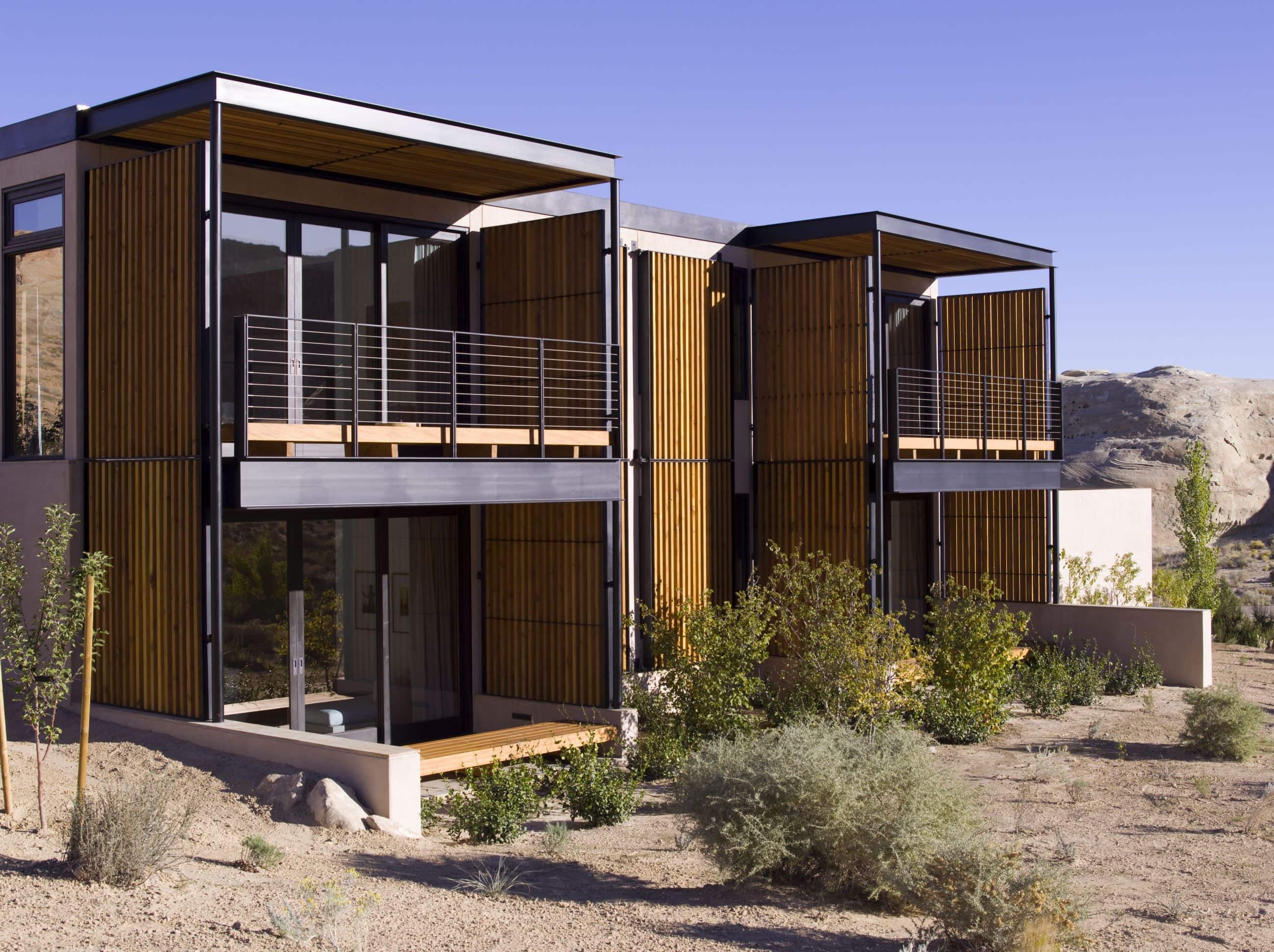 Located in a stunning high desert setting, The Mesa at Amangiri includes plans for 36 villas that offer access to the amenities of the adjacent Amangiri Resort. Designed to blend seamlessly with the landscape, the villas have a low-rise profile and use materials, colors, and textures that complement the site. The masterplan design prioritizes minimal environmental impact, with buildings and paved roads strategically placed to protect fragile desert flora. Energy use is optimized through thoughtful orientation, brise-soleils for shading, geothermal heating and cooling, and localized solar water heating.