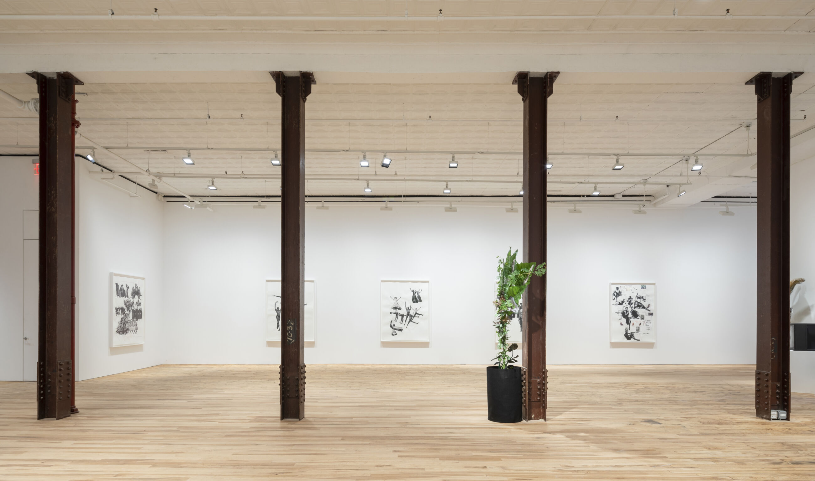 52 Walker, David Zwirner’s new Tribeca exhibition space led by director Ebony L. Haynes, opened on October 28 with Kandis Williams’s “A Line,” an exhibition of video, collages and sculpture. The gallery, with original cast-iron columns, wood floor and tin ceiling, evokes the roughhewn, loft galleries in SoHo during the 70s and 80s. The gallery is two full floors, with the exhibition area on the ground level of the five-story, landmark building. Windows on the north and south allow natural light into the lower level, which consists of private offices and viewing rooms. The exhibition marks Williams’s first solo presentation in New York.